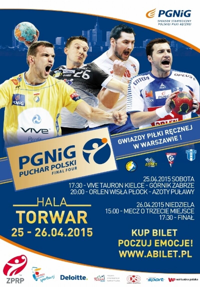 Już 25-26 kwietnia na warszawskim Torwarze final pucharu PGNiG w piłce ręcznej. Półinały 25.04.2015 start godzina 17.30. W niedziele 26.04 mecz o III miejsce godzina 15, finał 17:30